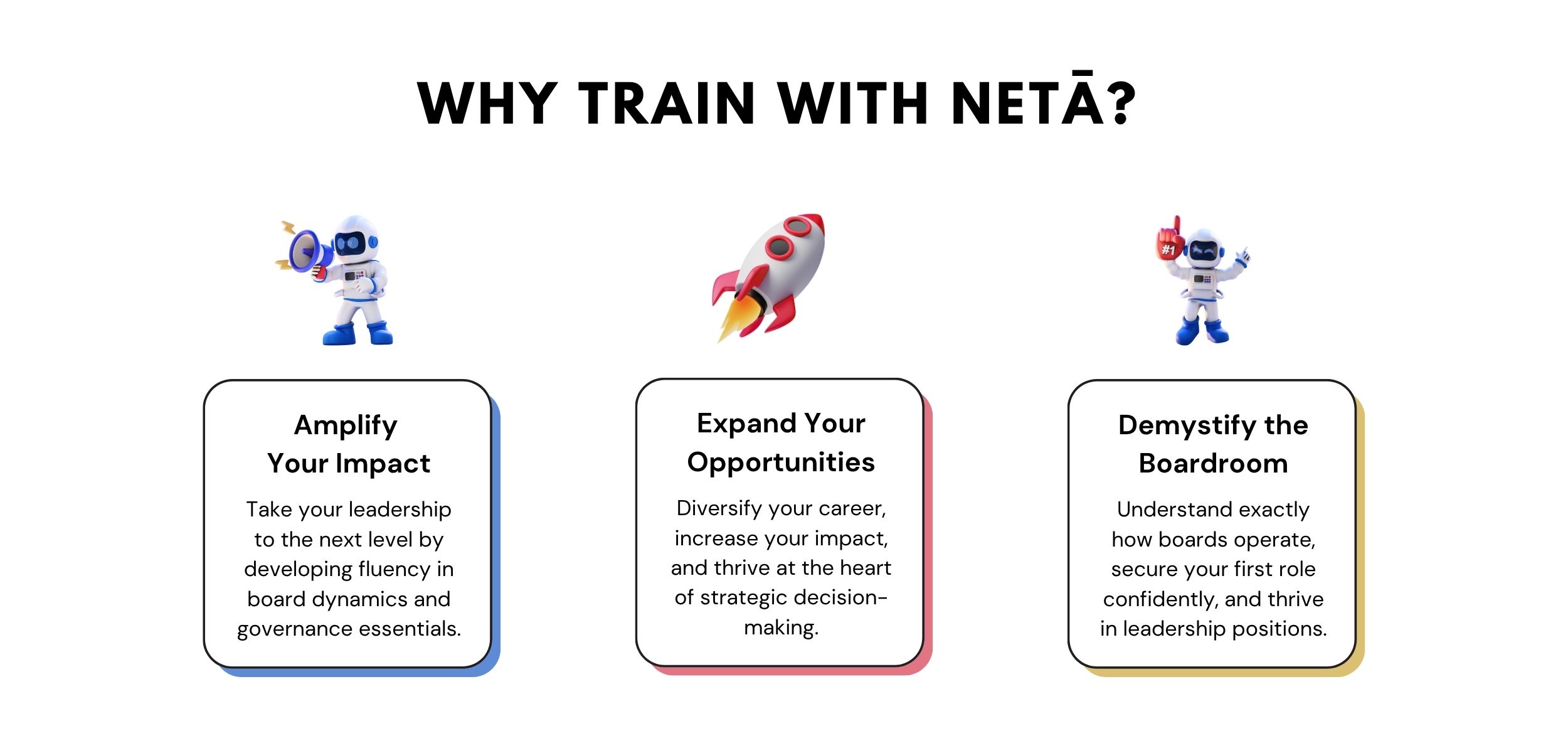 NetÄ Board Training isnāt just another online courseāitās your ticket to the boardroom. Experience a dynamic blend of expert-led live sessions, interactive virtual learning, and peer-to-peer collaboration. Dive into essential board topics, join a vibrant community of ambitious executives, and gain hands-on guidance as you confidently transition into strategic leadership - all whilst gaining CPD accredited learning hours. This is your momentāprepare to lead from the boardroom with clarity and confidence.